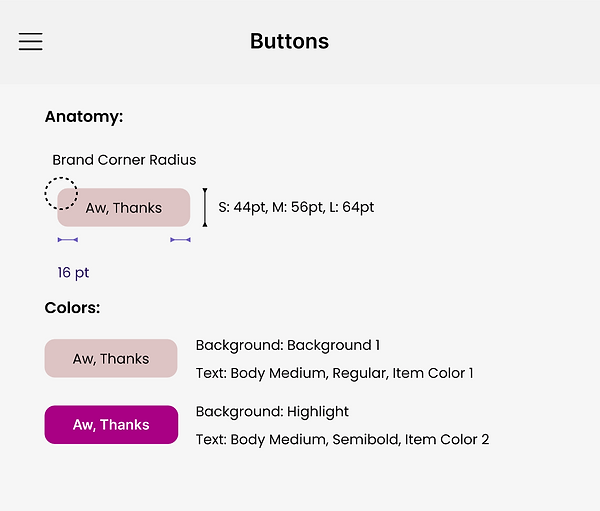 Creating a hybrid brand design system with components as well as detailed design specifications and strategy.